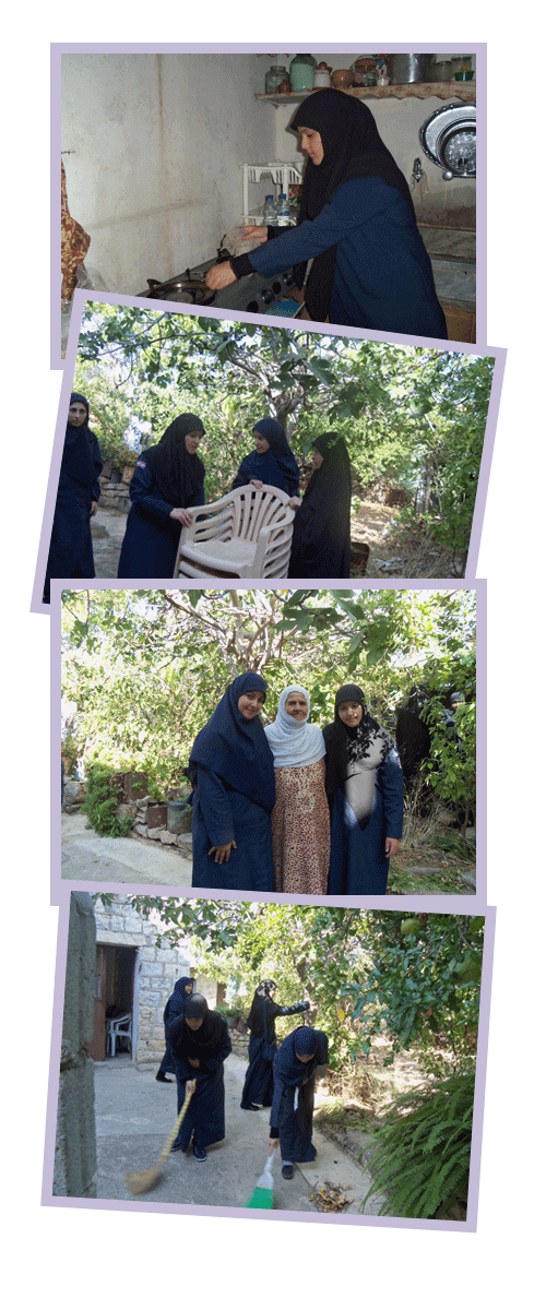 في دار قديمة تحيط بها باحة كبيرة وأشجار معمرة تعيش (الحاجة أم علي) المرأة الثمانينية التي لا معيل لها،وإليها كان مقصد دليلات من فوج السيدة مريم(ع)/كفررمان في المنطقة الثانية في نشاط خدمة مجتمع قمن به الى منزلها حيث قمن بمعاونتها على تنظيف المنزل و الباحة بعدما أحضرن لها بعض الأغراض.(الحاجة أم علي) شكرت للدليلات مبادرتهن وهن بدورهن وعدنها بزيارتها دوماً.